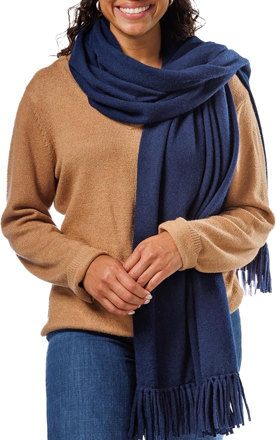 Top pick: A neutral-toned Fishers Finery or Velanio cashmere wrap that pairs seamlessly with dresses or loungewear.