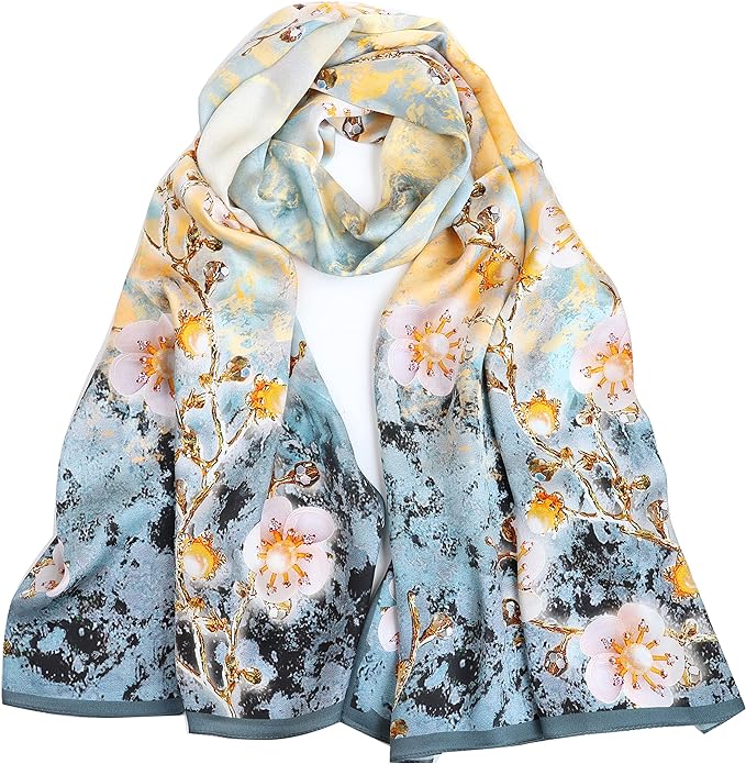 - Meisee 100% Mulberry Silk Scarf in Blue & Yellow – $28.99